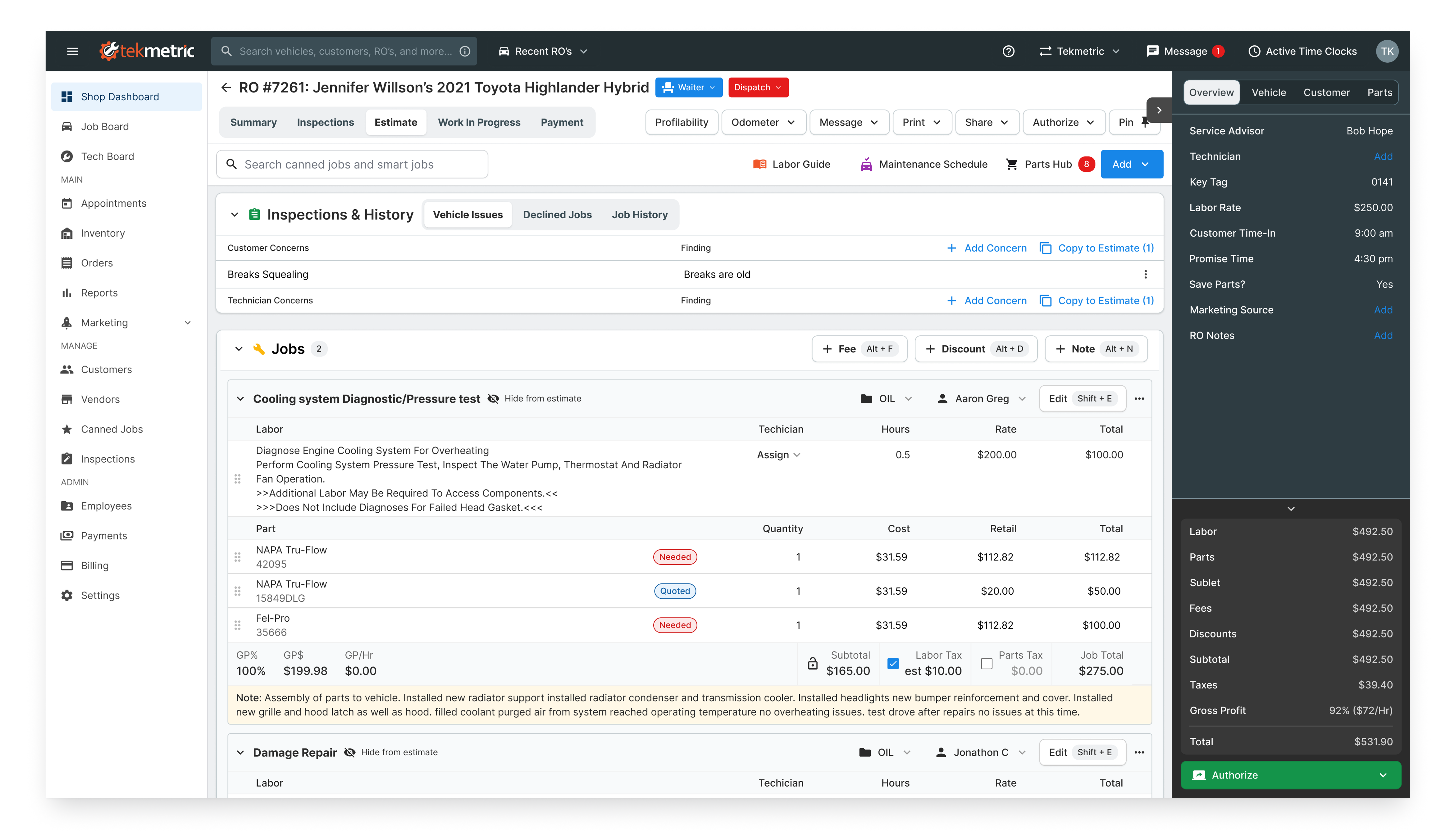 At Tekmetric, the main goal is to service auto shops with the best experience to create repair orders, manage employees, and increase sales.