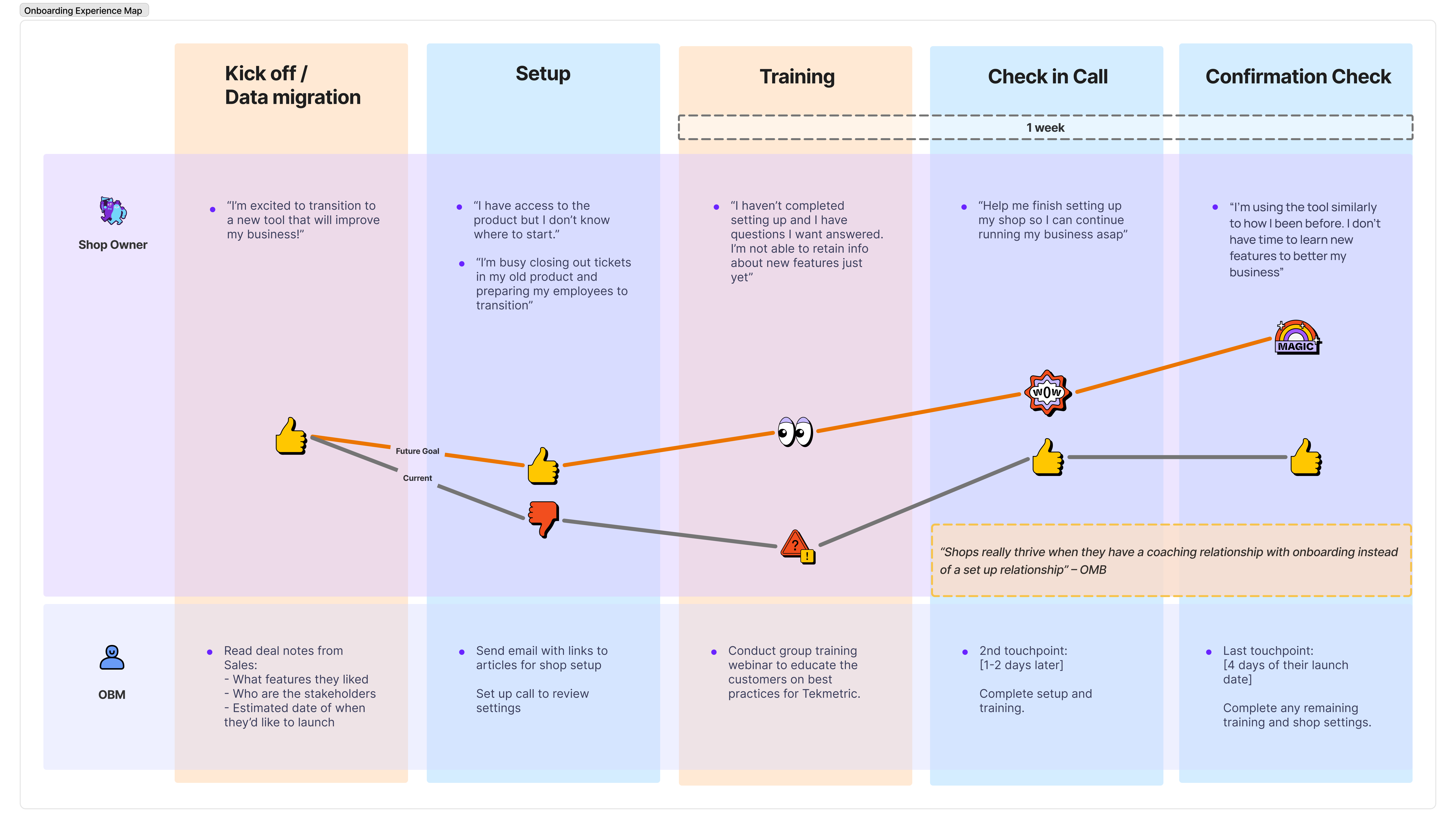 At Tekmetric, when new auto shops purchase a subscription, it takes up to a week to fully onboard them onto the product. This is because the current onboarding process is handled by an internal team. This experience quickens the integrated onboard experience allows shops to set up their account independently and thus reduce churn.