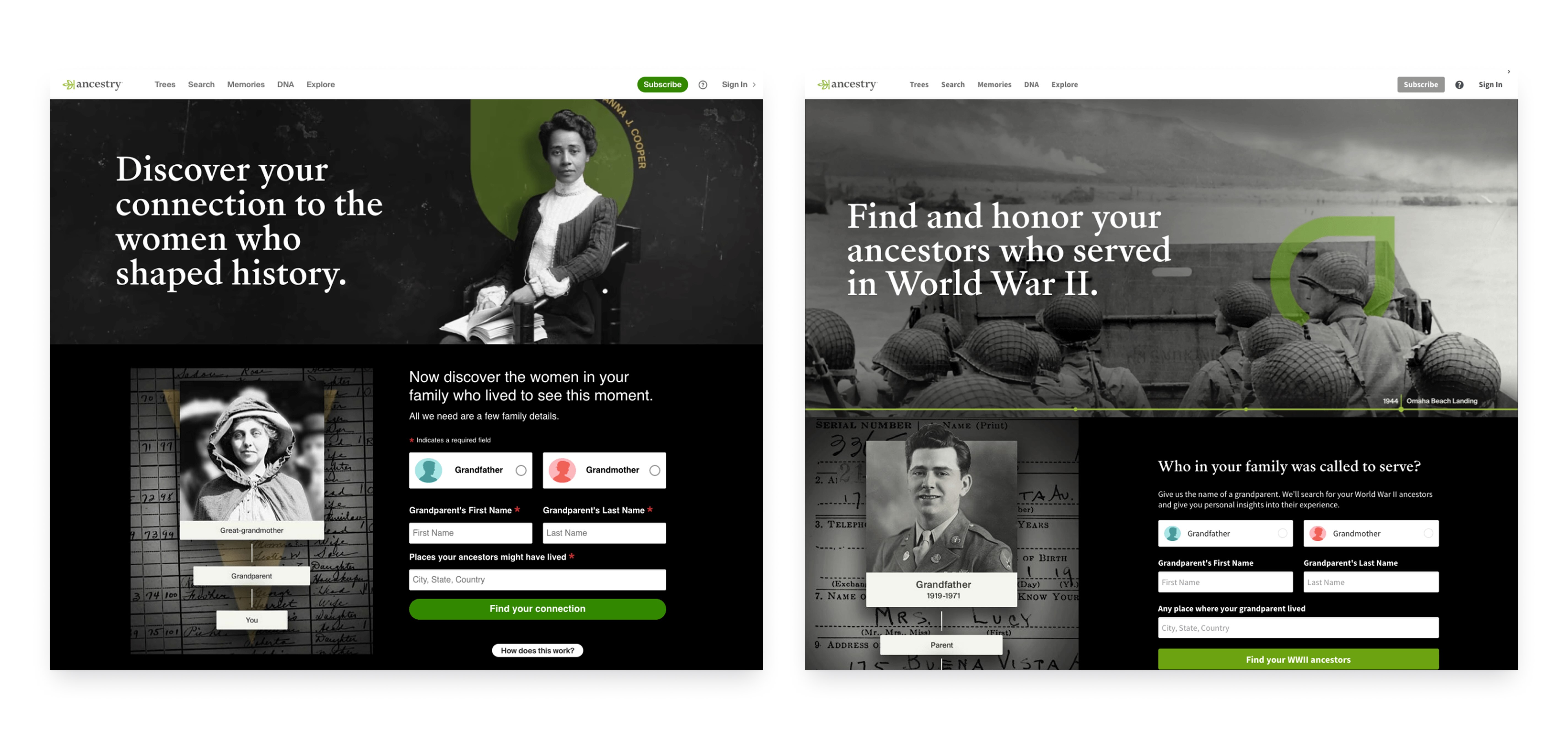 Landing Page to Market Ancestry via StoryScout
